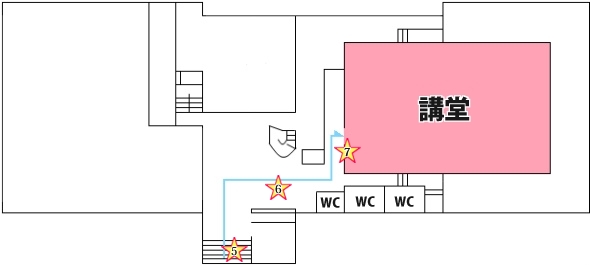 クラーク会館正面の階段を上ると二階入口となります。第二会場へお越しの方はこちらへ。